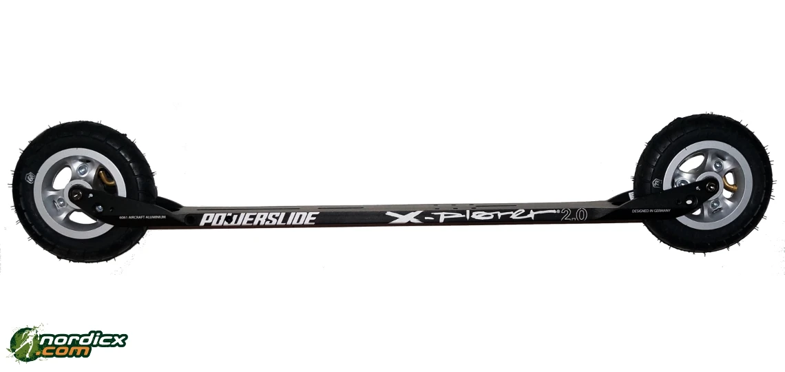 aluminum frame is very similar to an xc-ski. For us, the Powerslide X-Plorer is the most stable and xc-ski-like rollerski on market, of all 150mm rollerskis. You like to ski Off-road and On-road? – For both skiers nordicx.com also recommends the 100mm training rubber wheels. You simply